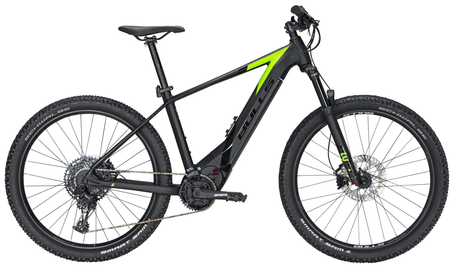 Hydroforming Alu-Rahmen, Bulls Lytro-35 Air-LO Boost Federgabel mit 120mm Federweg, SRAM SX Eagle Schaltwerk, Schalthebel und 11-50 Zahnkranz, MT410/MT420 Bremsen (180mm), Bulls AS-T30N Disc Felgen, MT400 Naben, Brose Mittelmotor Drive-S MAG 250W / bis 90Nm, 555Wh oder 750Wh Akku (Aufpreis), Sport-Display, Smart Sam 2.60 Reifen, Monkey-Link Halter