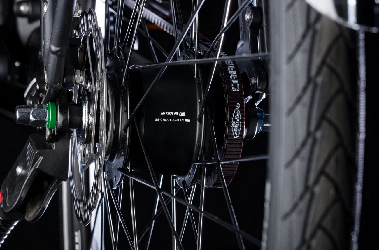Hydroforming Alu-Rahmen mit Tapered Steurrohr, NCX-E-LO-Air Federgabel, Shimano Nexus 5-Gang Nabenschaltung mit Revoshift Schalthebel, Gates CDX Riemenantrieb, Shimano MT-400 Disc-Bremsen (160/180mm), Ryde HC-26 Disc Felgen, Brose Drive-S Mag Mittelmotor 250W / bis 60Nm, 750 Wh Akku, Beleuchtung über den Akku, 70 Lux Lampe, großes LCD-Display, Marathon Almotion Reifen 50-622, Ergon Griffe