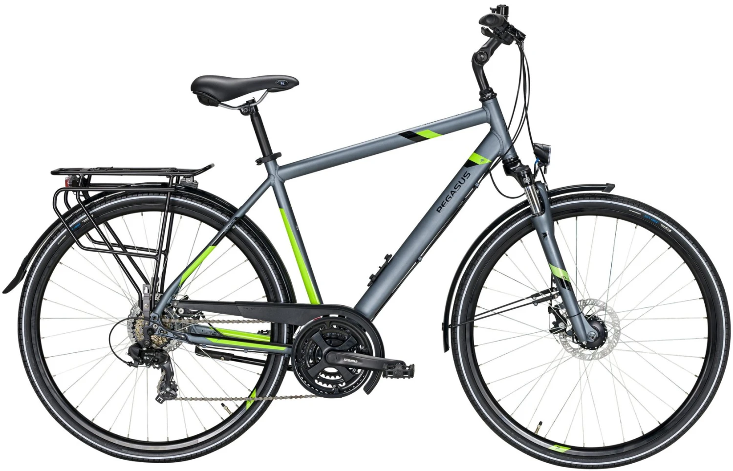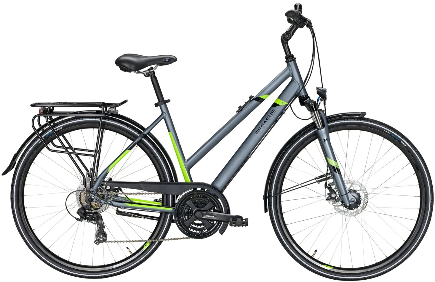 6061 Alu-Rahmen, Suntour NEX-DS Federgabel, Tourney Schaltwerk und Umwerfer, Altus Schalthebel, Suntour Kurbeln, Tektro MD-M280 mechanische Scheibenbremsen, DDM-2 Hohlkammer-Felgen, Vee-Tire City-Cruz Reifen (42-622), verstellbarer Vorbau, Ergo-Griffe, Freeway Sattel, Nabendynamo, 15 Lux LED-Lampe, Standrücklicht