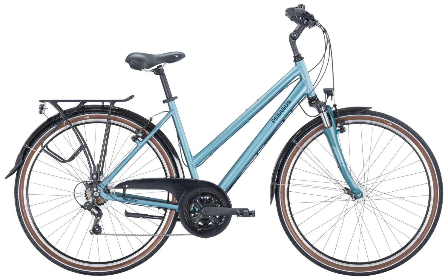 Ausgestattet mit einer SHIMANO 21-Gang-Schaltung bietet das Piazza 21 jede Menge sportlichen Spielraum. Schnell durch den Alltag oder raus in die Natur – alles kann, nichts muss. Neben der entspannt-sportlichen Sitzposition sorgt die robuste Federgabel dabei für zusätzlichen Fahrkomfort.