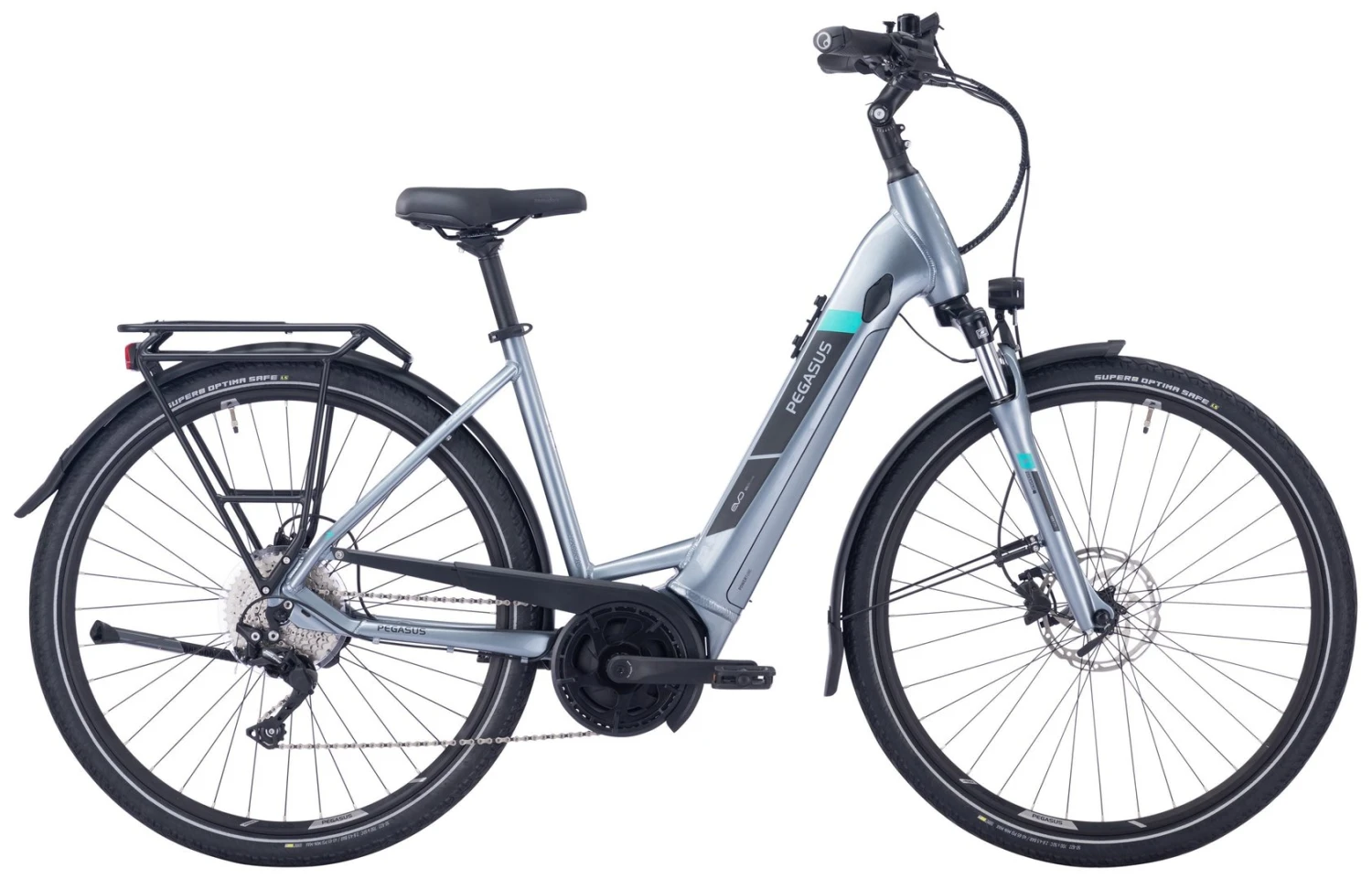 Hydroforming 6061 Alu-Rahmen mit tapered Steuerrohr, NEX-E25-DS Federgabel, Deore 10-Gang Schaltwerk, Schalthebel und Zahnkranz (11-42), Tektro HD-T390 Scheibenbremsen mit 180/160mm Bremsscheiben, Taurus-2000 Hohlkammerfelgen, Bosch Performance Mittelmotor 250W/65Nm, integrierter 400Wh (Serie), 500Wh oder 625Wh (Aufpreis) Akku 36V Li-Ion, Supero Optima Safe Reifen 50-622, Fuxon FS-50 LED-Lampe mit 50 Lux, 12 Volt Lichtanlage, Comodoro Sattel, verstellbarer UP-Vorbau