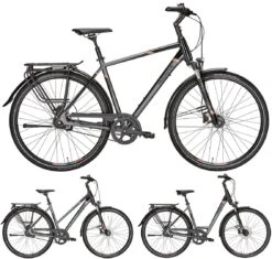 7005 Alu-Rahmen mit innenverlegten Kabeln und tapered Steuerrohr, Suntour NEX-DS Federgabel einstellbar, Nexus 8-Gang Nabenschaltung mit Freilauf und Revoshift Schalthebel, Gates Carbodrive CDN Riemenantrieb, Shimano MT201 Scheibenbremsen, Taurus 2000 Hohlkammer-Felgen, verstellbarer UP-Vorbau, FixSystem Ergo-Griffe, Nabendynamo, LED Sensor-Lampe, Standrücklicht