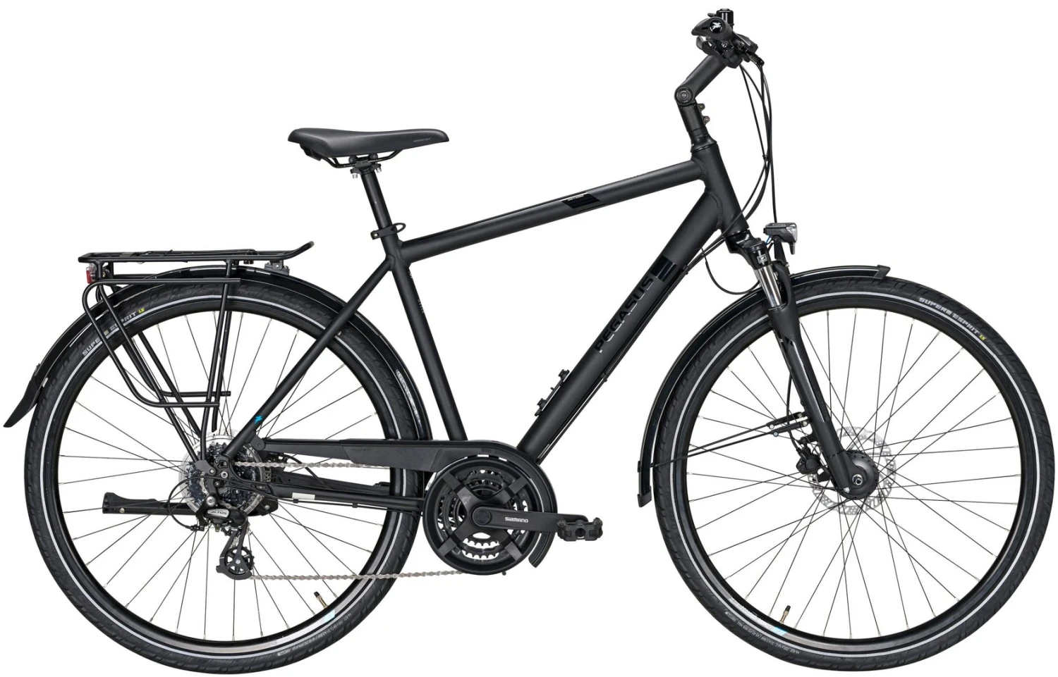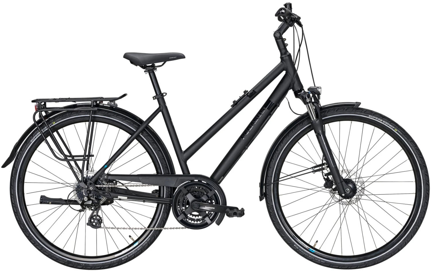 6061 Alu-Rahmen, Suntour NEX-DS einstellbare Federgabel, Altus Schaltwerk und Schalthebel Tourney Umwerfer und TY301 Kurbeln, Tektro HD-T275 Scheibenbremsen, DDM-2 Hohlkammer-Felgen, Super Esprit Reifen 44-622, verstellbarer Vorbau mit 31,8mm Lenker, Ergo-Griffe, Nabendynamo, 20 Lux LED-Lampe, Standrücklicht, einstellbarer Hinterbauständer, Horn Catena Kettenschutz, Gummikralle Pedale